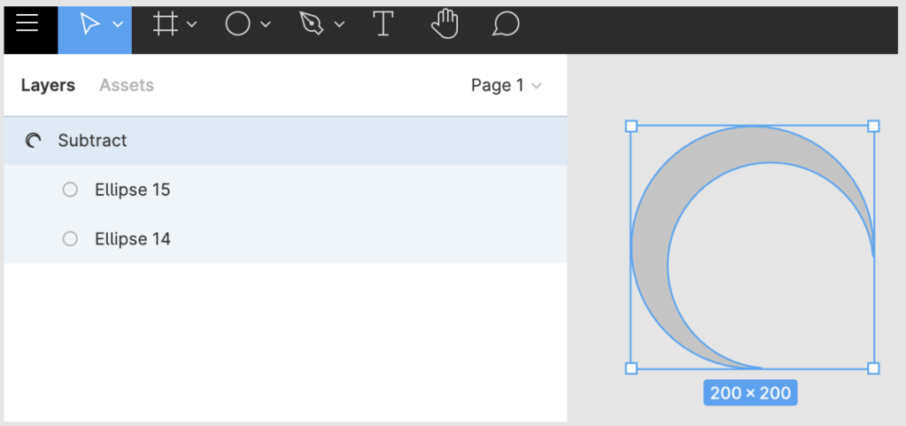 両方の円を同時選択した状態で、以下のように「Subtract selection」をクリックします。