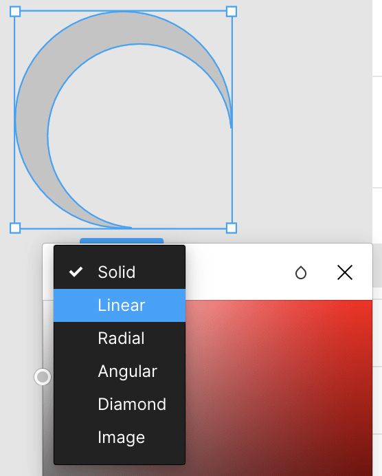 グラデーションを付けたいので以下のように「Linear」を選択します。