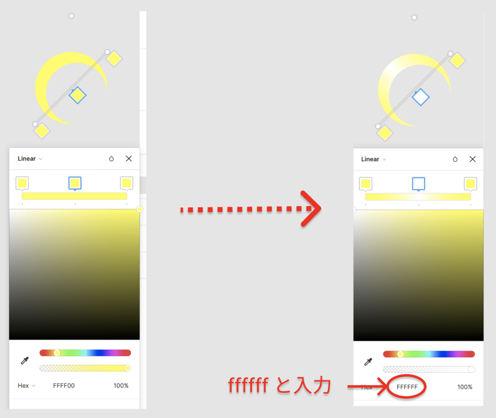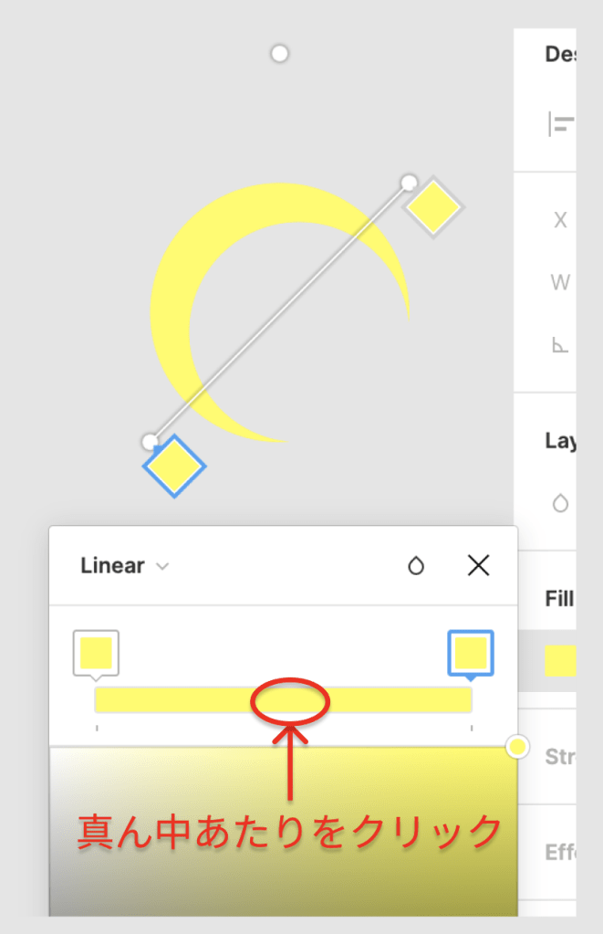 ツールチップの左右のつまみを選択し、それぞれ黄色に塗っていきます。