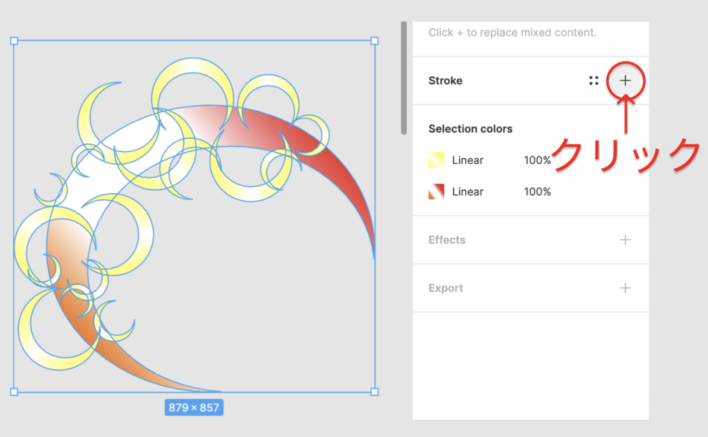 以下のように全シェイプを選択して、「Stroke」の右の「+」をクリックします。